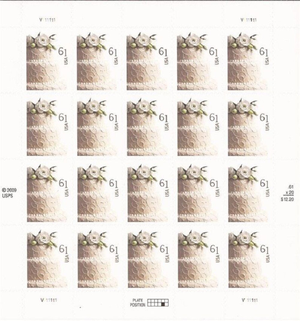 Wedding Cake Sheet of 20 U.S. Postage 61 Cent Stamps Scott 4398