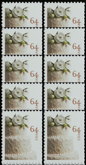 Wedding Cake Sheet of 20 U.S. Postage 64 cent Stamps Scott 4521