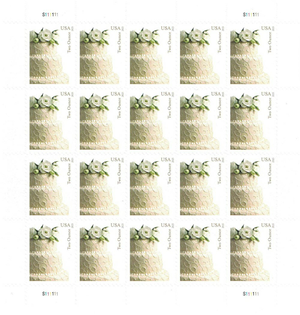 Wedding Cake Sheet of Twenty 2 Ounce Current Rate Stamps Scott 5000