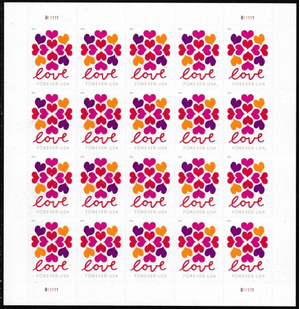 Wedding Hearts Full Sealed Pad of 100 Sheets (2000 Stamps) Scott 5339