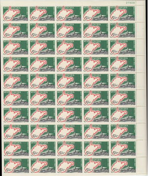West Virginia Centennial Sheet of Fifty 5 Cent Postage Stamps Scott 1232