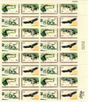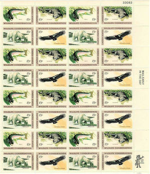 Wildlife Conservation Complete Sheet of Thirty Two 8 Cent Stamps Scott 1427-30
