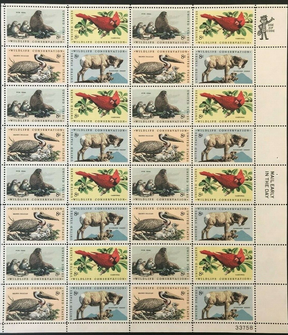 Wildlife Conservation Complete Sheet of Thirty Two Stamps Scott 1464-67