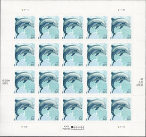 Wildlife Dolphin Sheet of Twenty 64 Cent Postage Stamps Scott 4388