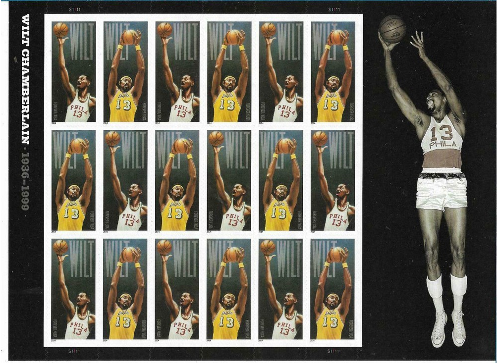 Wilt Chamberlain Sheet of 18 Current Rate Stamps Scott 4950-51