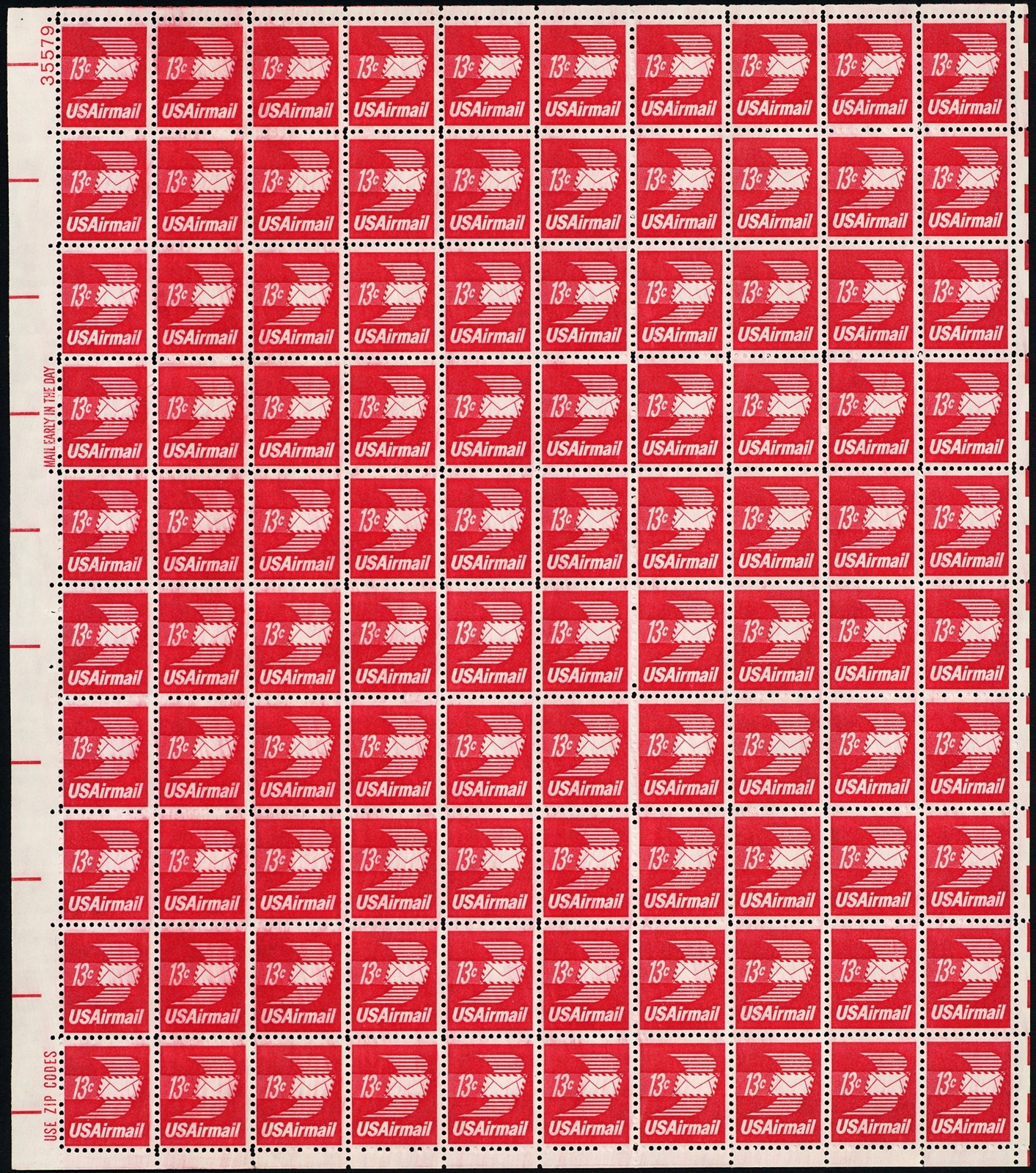 Winged Full Sheet of One Hundred 13 Cent Airmail Postage Stamps Scott C79