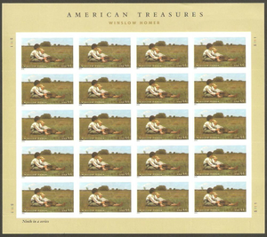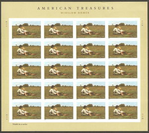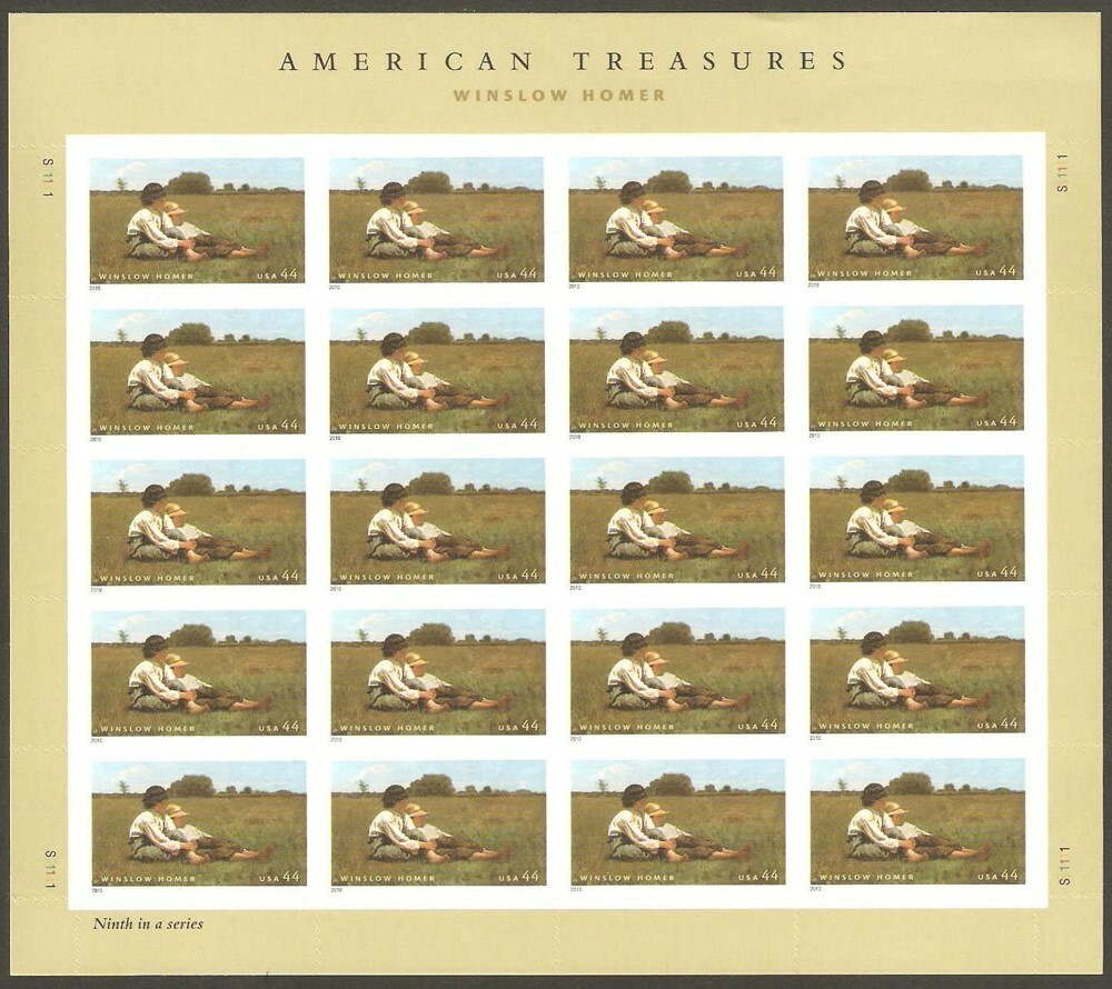 Winslow Homer Sheet of Twenty 44 Cent Postage Stamps Scott 4473