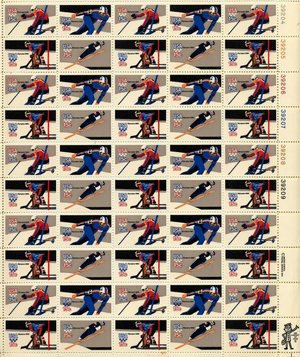 Winter Olympics 1980 Complete Sheet of Fifty 15 Cent Stamps Scott 1795-98
