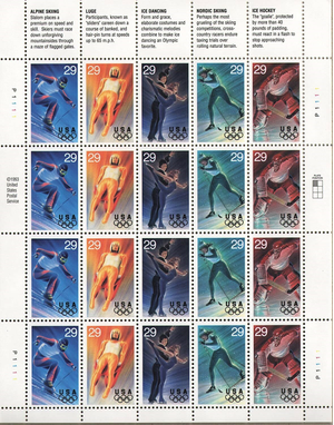 Winter Olympics Sheet of Twenty 29 Cent Postage Stamps Scott 2807-11