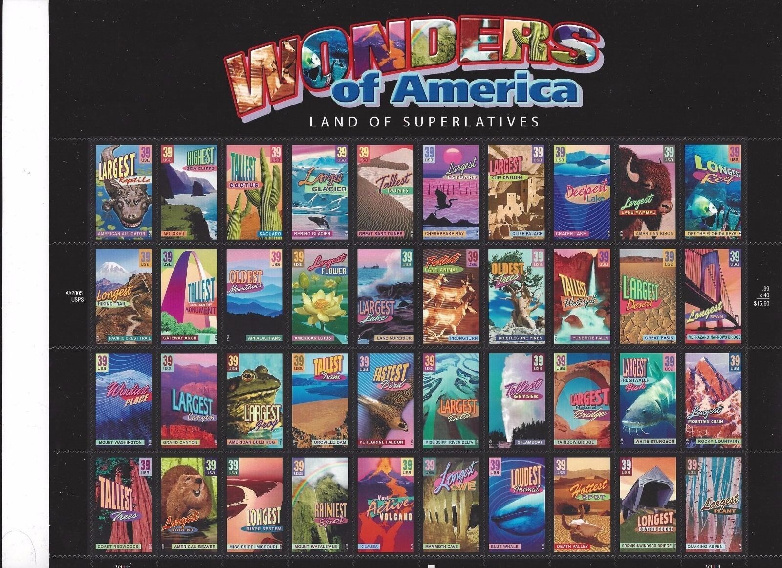 Wonders of America Sheet Of Forty 39 Cent Stamps Scott 4033-72
