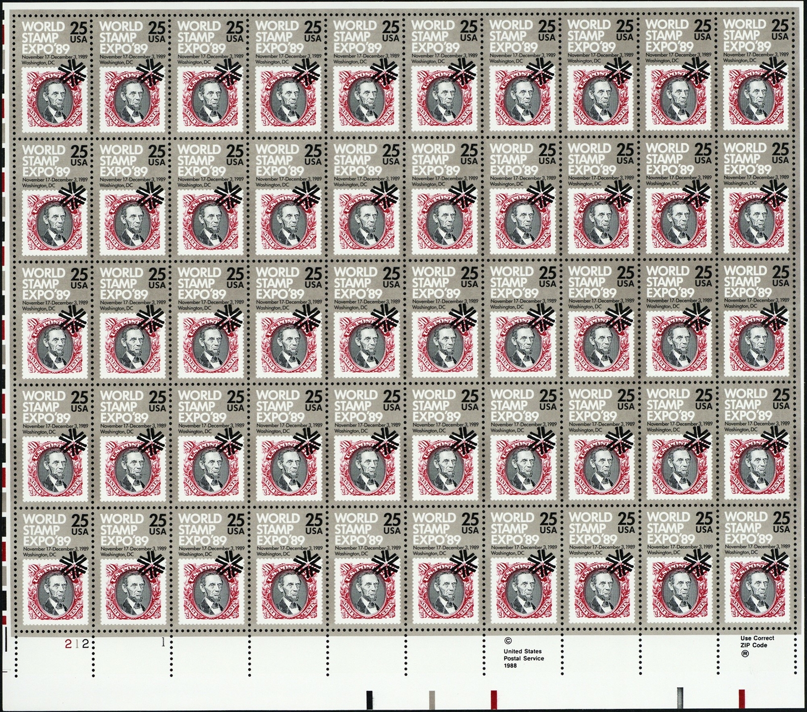 World Stamp Expo '89 Sheet of Fifty 25 Cent Postage Stamps Scott 2410