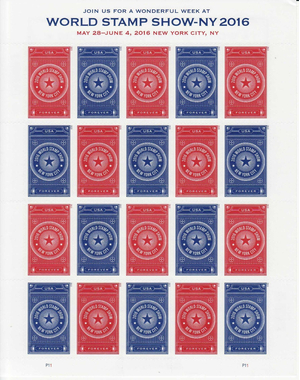 World Stamp Show NY Sheet of 20 Current Rate Stamps Scott 5010-11