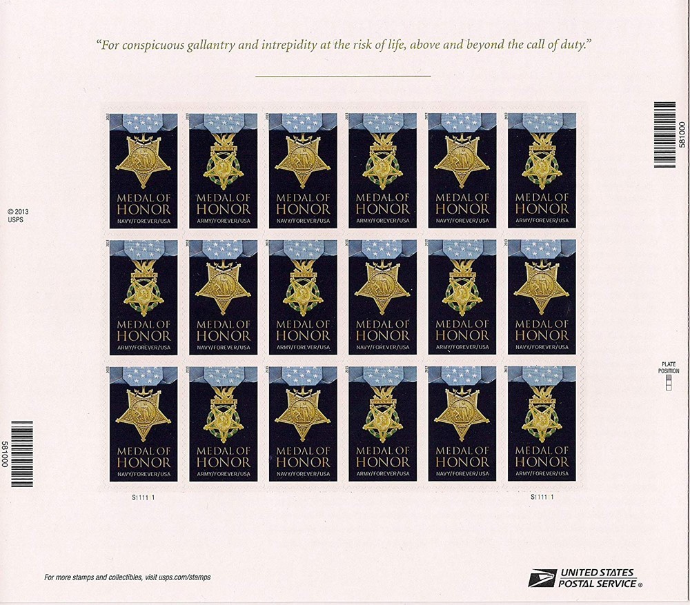 World War II Medal of Honor Sheet of 20 Current Rate Stamps Scott 4822a