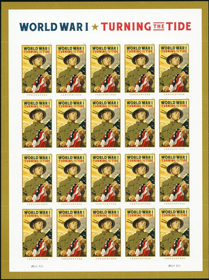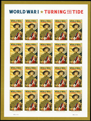 WWI Turning The Tide Pane of 20 Current Rate Stamps Scott 5300