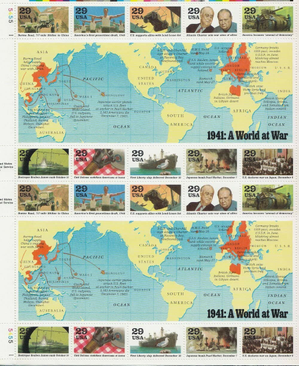 WWII 1941: A World at War Sheet of Twenty 29 Cent Postage Stamps Scott 2559