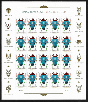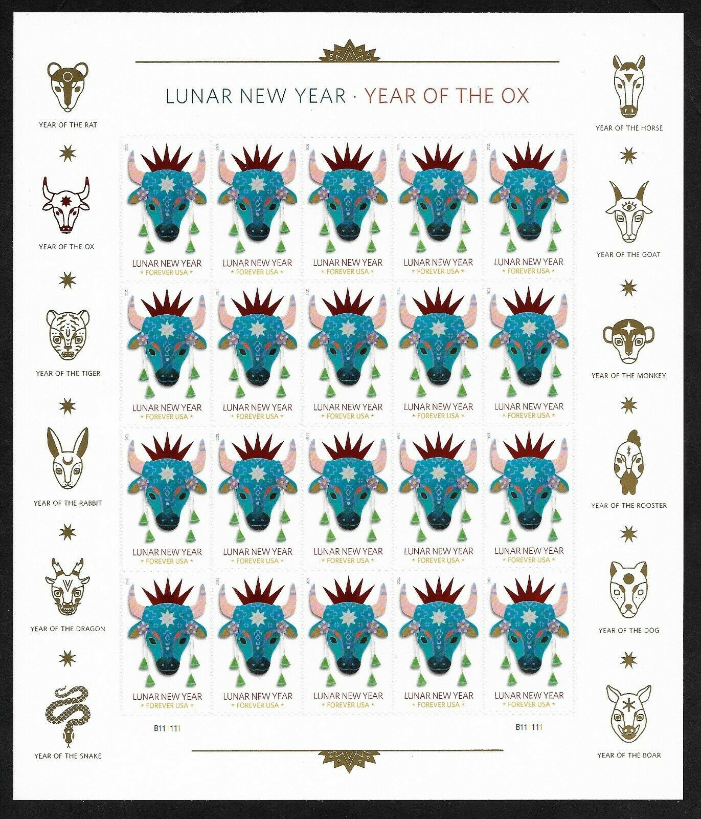 Year of the Ox Lunar New Year 2020 Sheet 20 Current Rate Stamps Scott 5556