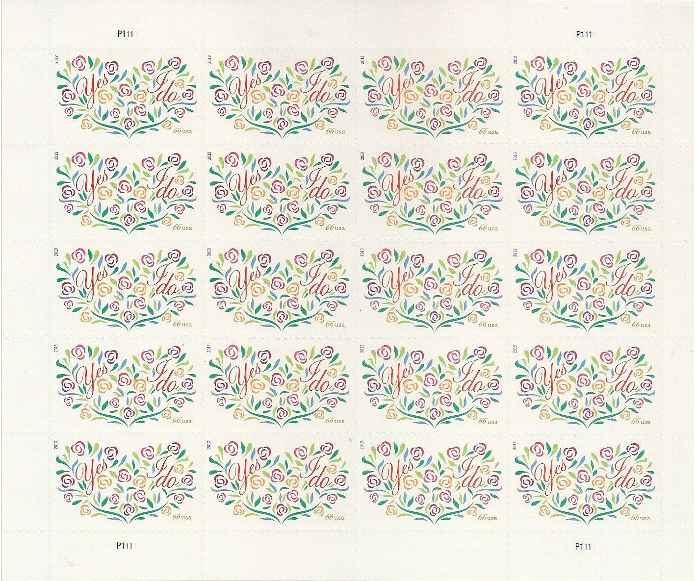 Yes, I Do - Full Sheet of 20 - 66 Cent - Wedding Stamps Scott 4765
