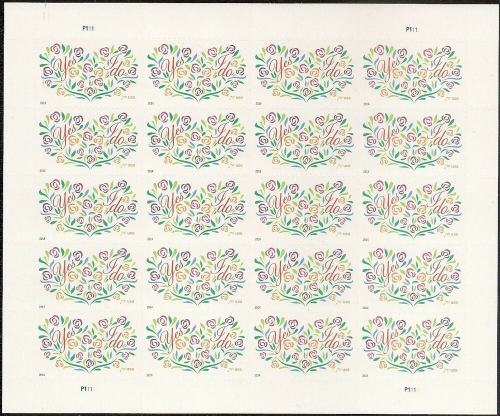 Yes, I Do - Full Sheet of 20 - 70 Cent Wedding Postage Stamps Scott 4881