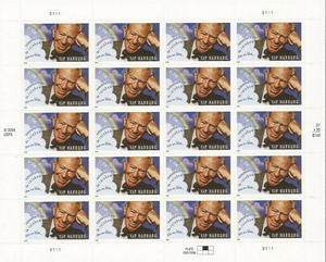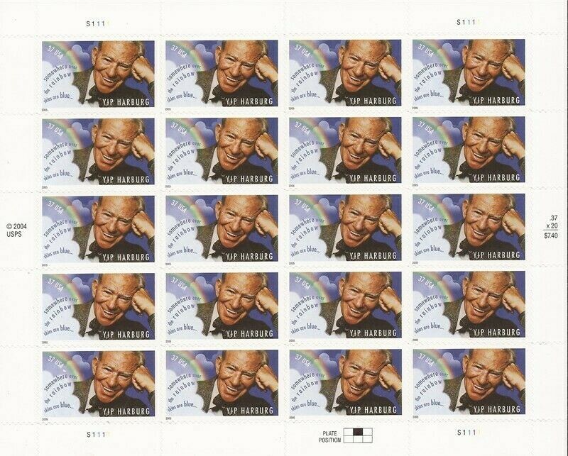 Yip Harburg Sheet of Twenty 37 Cent Postage Stamps Scott 3905