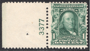 | United States Scott 300. Mint. Never hinged. With plate number. (aaa300ea) |