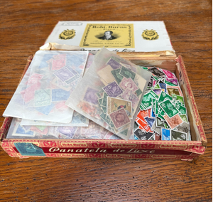Collection of 1000's of used Great Britain Postage & Revenue Stamps in cigar box