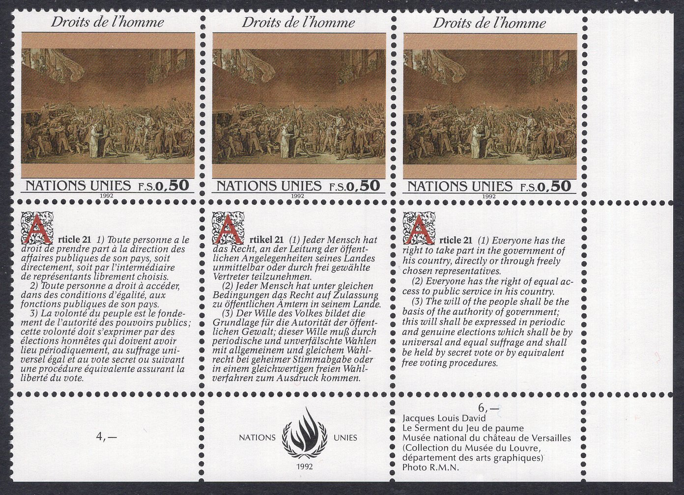 United Nations-Geneva Scott 224. Inscription block of 3. Mint. Never hinged.