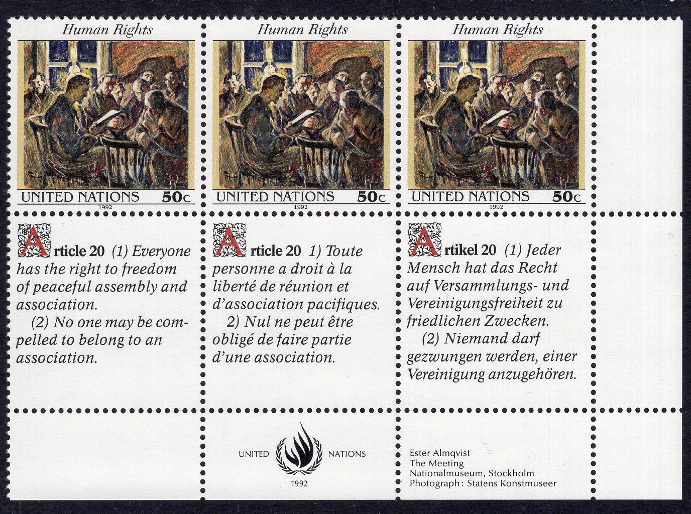 United Nations-New York Scott 617. Inscription block of 3. Mint. Never hinged. 2