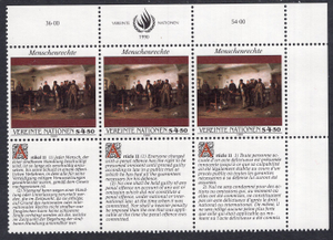 United Nations-Vienna Scott 108. Inscription block of 3. Mint. Never hinged.