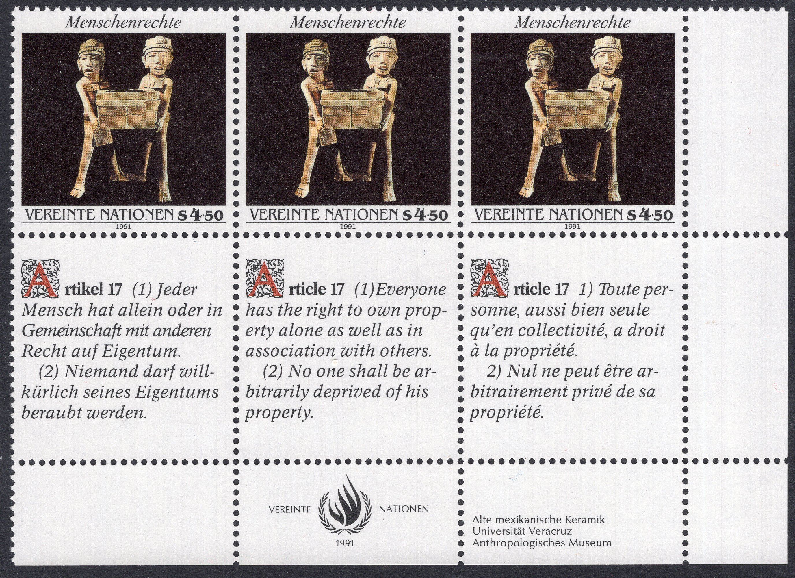 United Nations-Vienna Scott 123. Inscription block of 3. Mint. Never hinged.