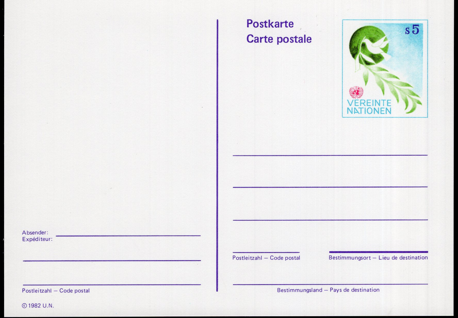 United Nations-Vienna Scott UX2. Mint. Postcard.